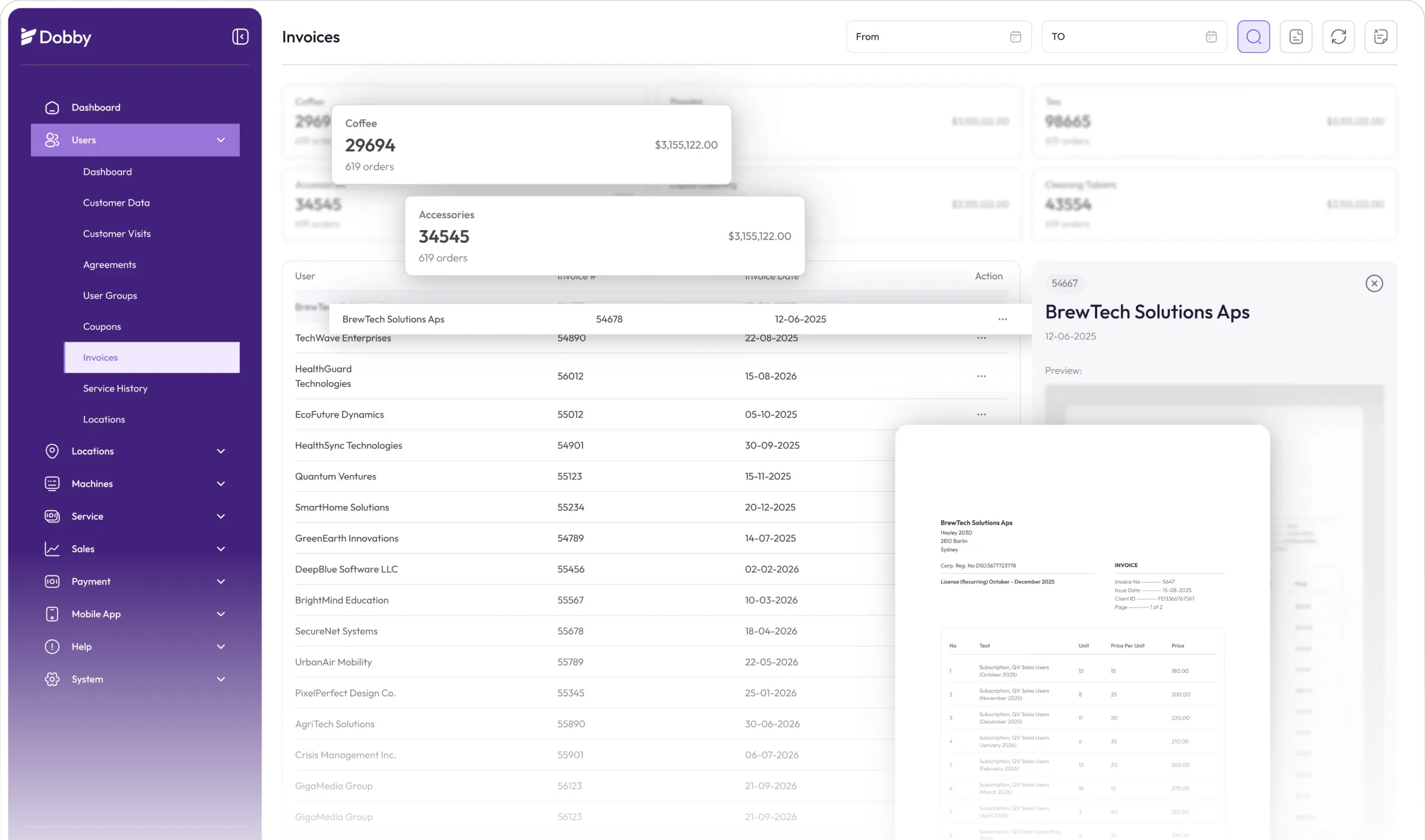 Automatic invoice generation eliminates hours of manual data entry each month.